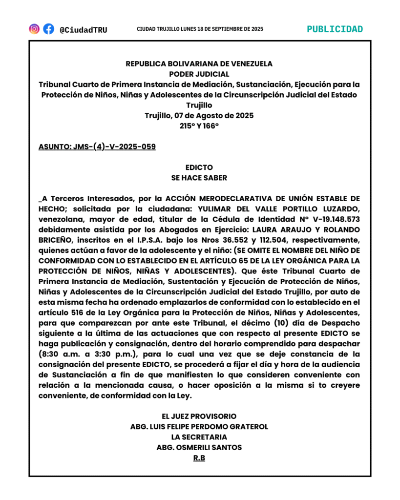 Yarelis Josefina Castillo de Graterol: Declaración de Únicos y Universales Herederos