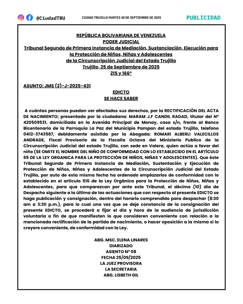 MARAM J.F CANDIL RADAD: RECTIFICACIÓN DEL ACTA DE NACIMIENTO