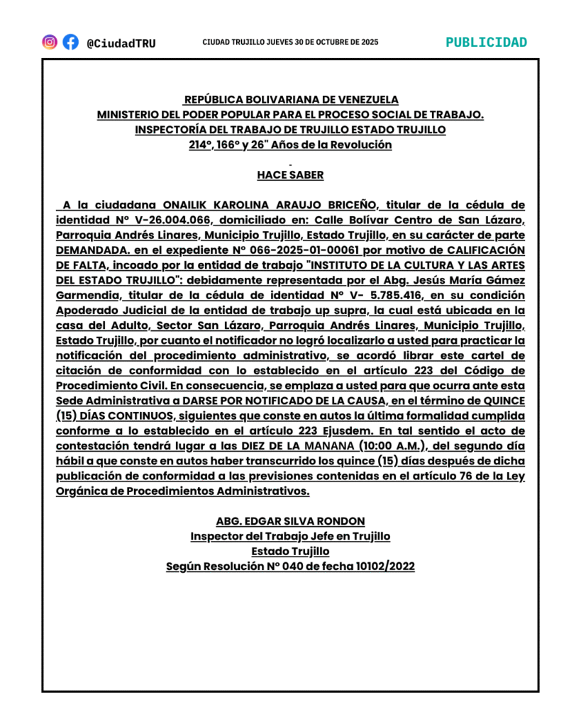 ONAILIK KAROLINA ARAUJO BRICEÑO: CALIFICACIÓN DE FALTA
