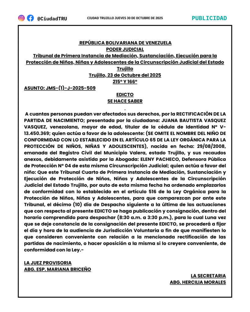 JUANA BAUTISTA VASQUEZ VASQUEZ: RECTIFICACIÓN DE LA PARTIDA DE NACIMIENTO