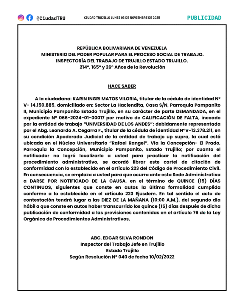 KARIN INGRI MATOS VILORIA : CALIFICACIÓN DE FALTA