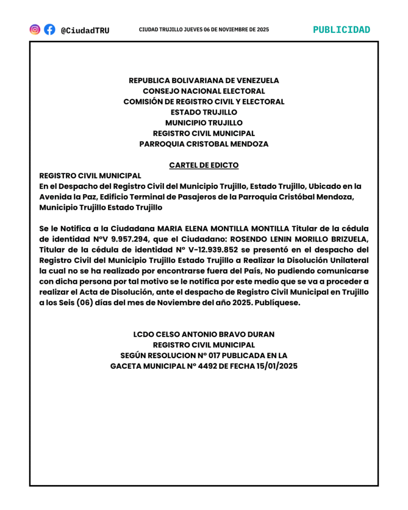 MARIA ELENA MONTILLA MONTILLA: Disolución Unilateral