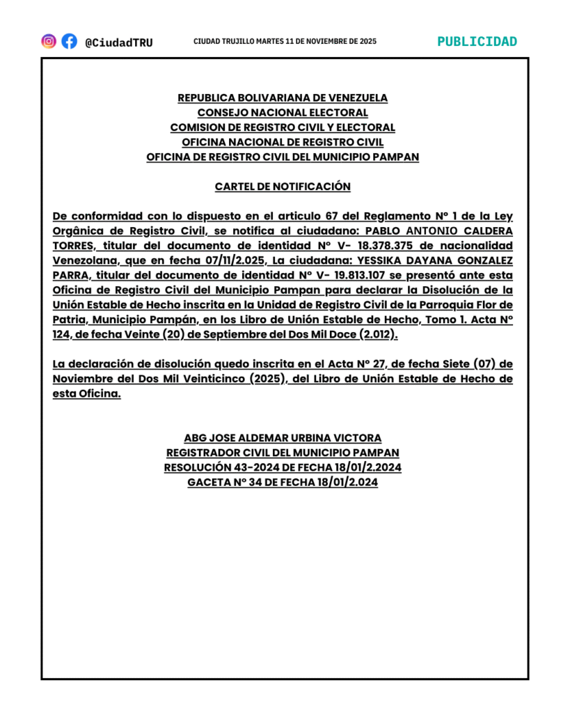 PABLO ΑΝΤΟΝΙΟ CALDERA TORRES: DISOLUCIÓN DE LA UNIÓN ESTABLE DE HECHO