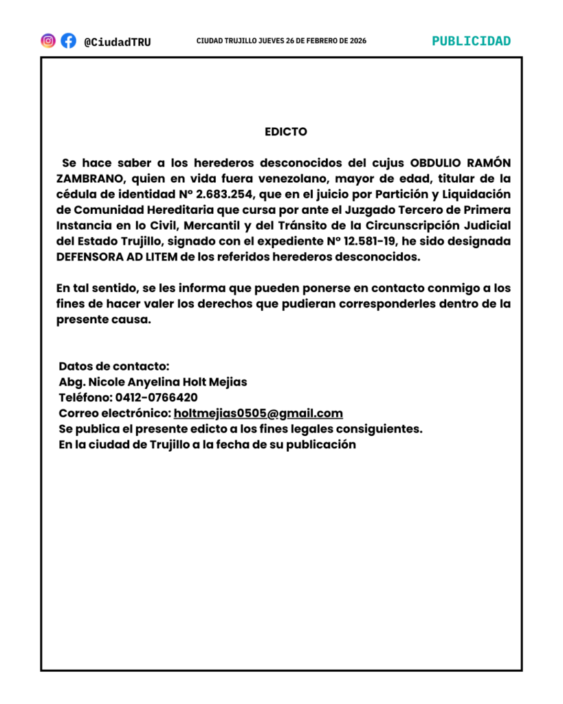 • Edicto: OBDULIO RAMÓN ZAMBRANO