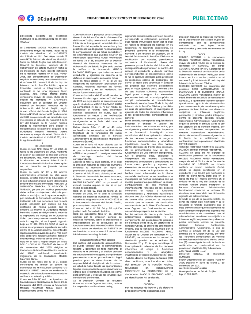 • MADELIS PALOMINO ABREU, venezolana, mayor de edad, Titular de la Cedula de Identidad N° V.-11.895.672