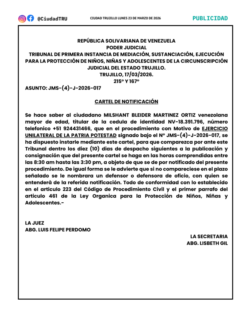 CARTEL DE NOTIFICACIÓN: MILSHANT BLEIDER MARTINEZ ORTIZ