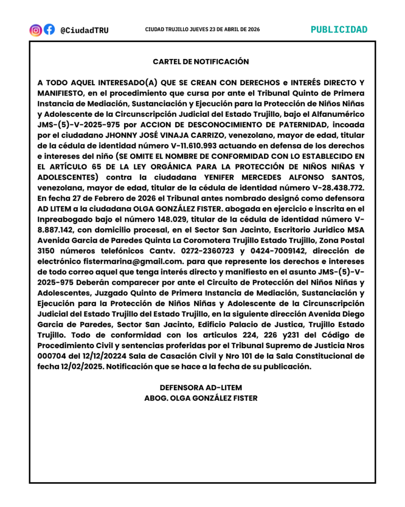 A todas las personas que se crean con derecho en la solicitud de Declaración de Únicos y Universales Herederos del de cujus Rafael Jesús Ugarte